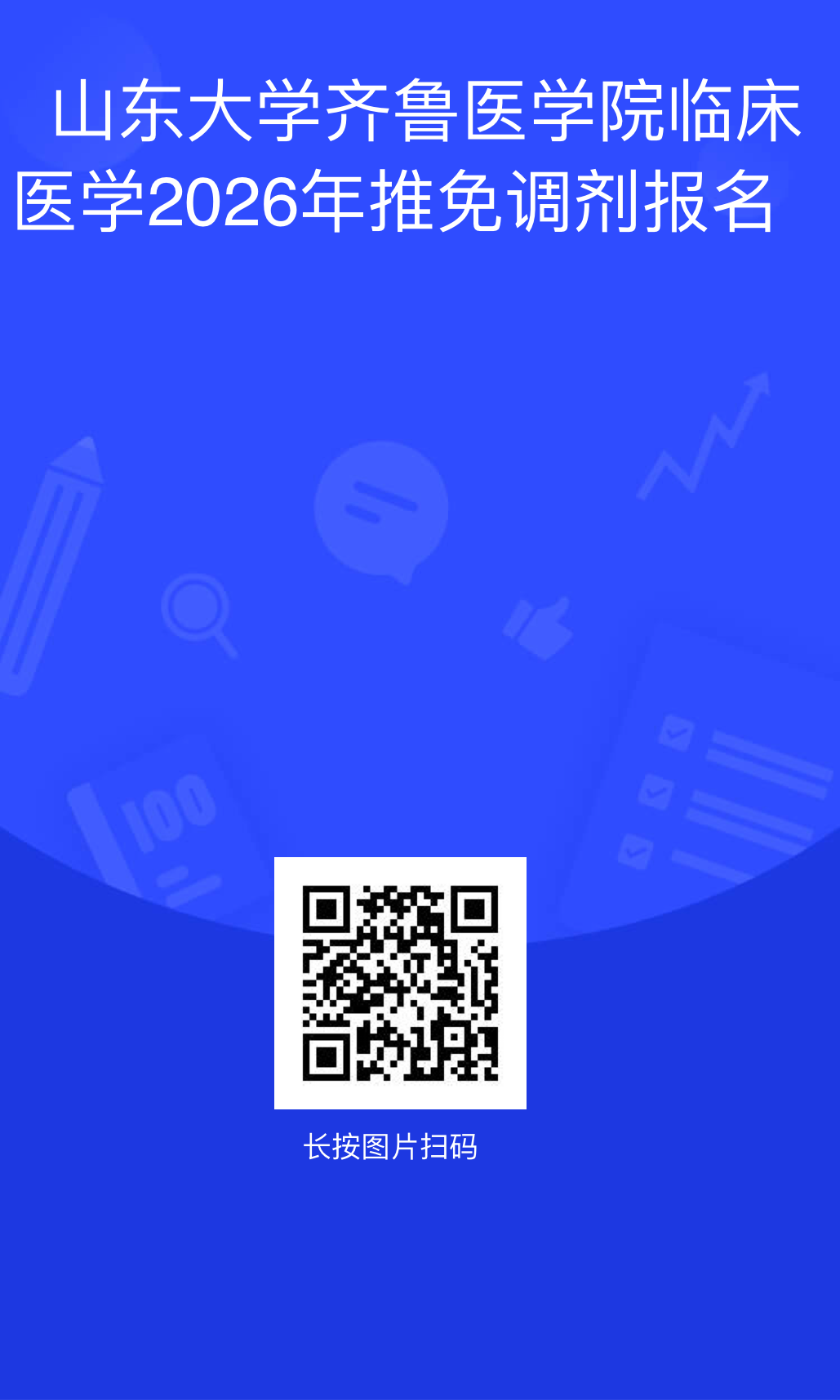 已在山东大学预推免系统报名齐鲁医学院(临床医学)但未被拟录取的考生,可报名参加调剂复试,报名条件与预推免条件相同。